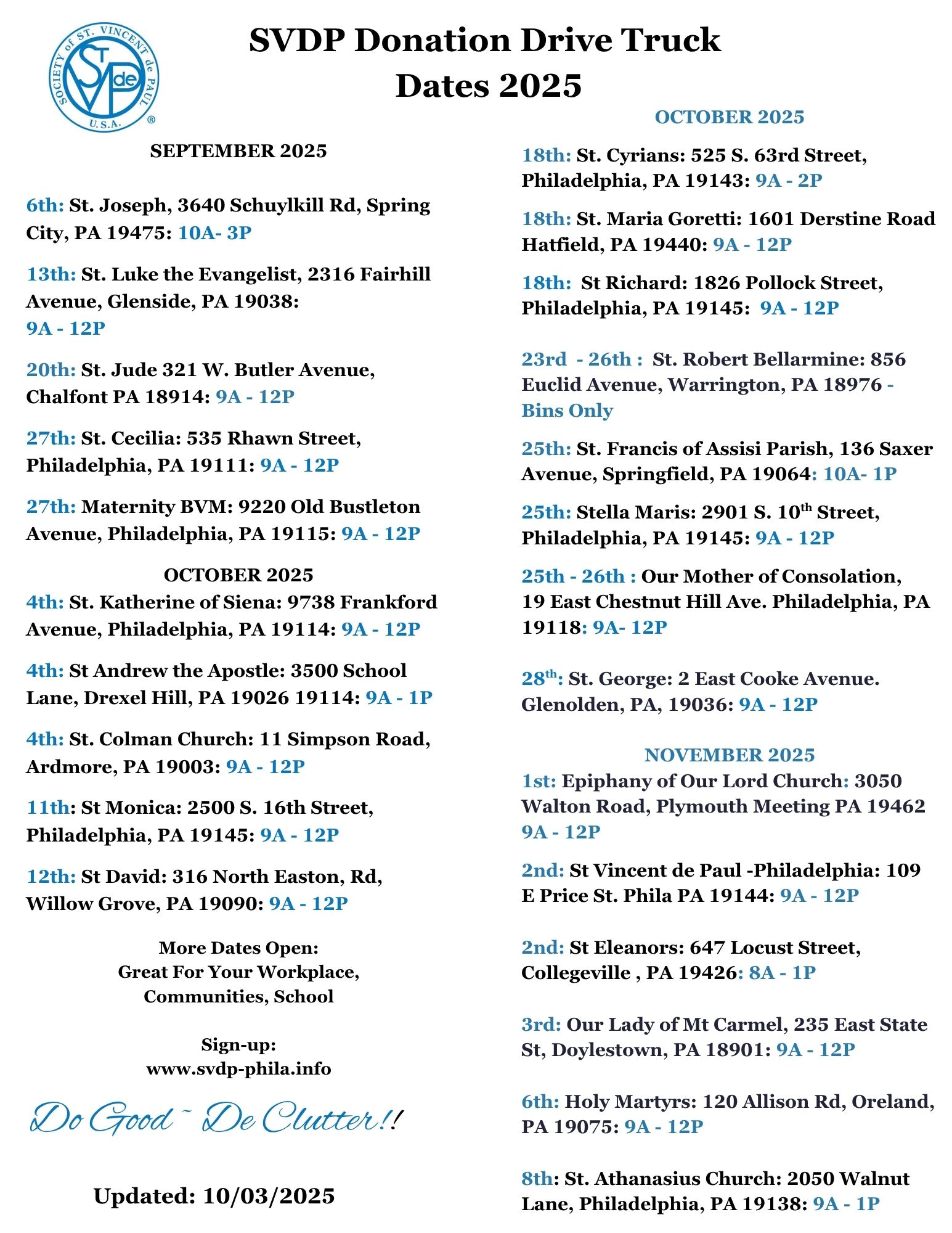 UPCOMING CLOTHING DRIVE LOCATIONS